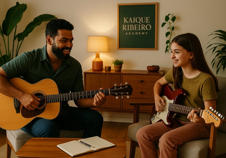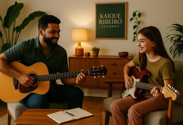 Aulas personalizadas de canto, violão, guitarra e banjo para todos os níveis de habilidade.